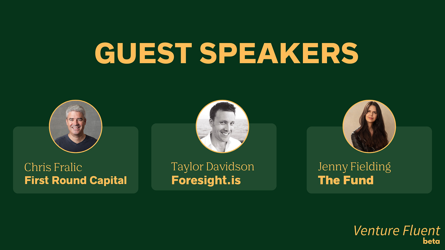 Taylor Davidson was our guest speaker for Module 5: Technical Considerations. Taylor has experience as a founder and VC, and he’s dedicated himself to helping thousands of entrepreneurs and investors learn how to work with the key financial models used in creating startups and venture funds. For Venture Fluent, he gave students a master class in capitalization tables, portfolio construction, and returns waterfalls. I learned a ton from Taylor, especially how to present this material to students who are just beginning their study of early-stage investing. [Taylor offers several Maven courses on these topics, which you should definitely check out if you’re new to startups or venture investing.]